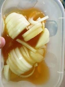 - Onions just now will remove juice that is automatically mixed with honey. If the weather is hot, the juice will come out faster than the cold weather.