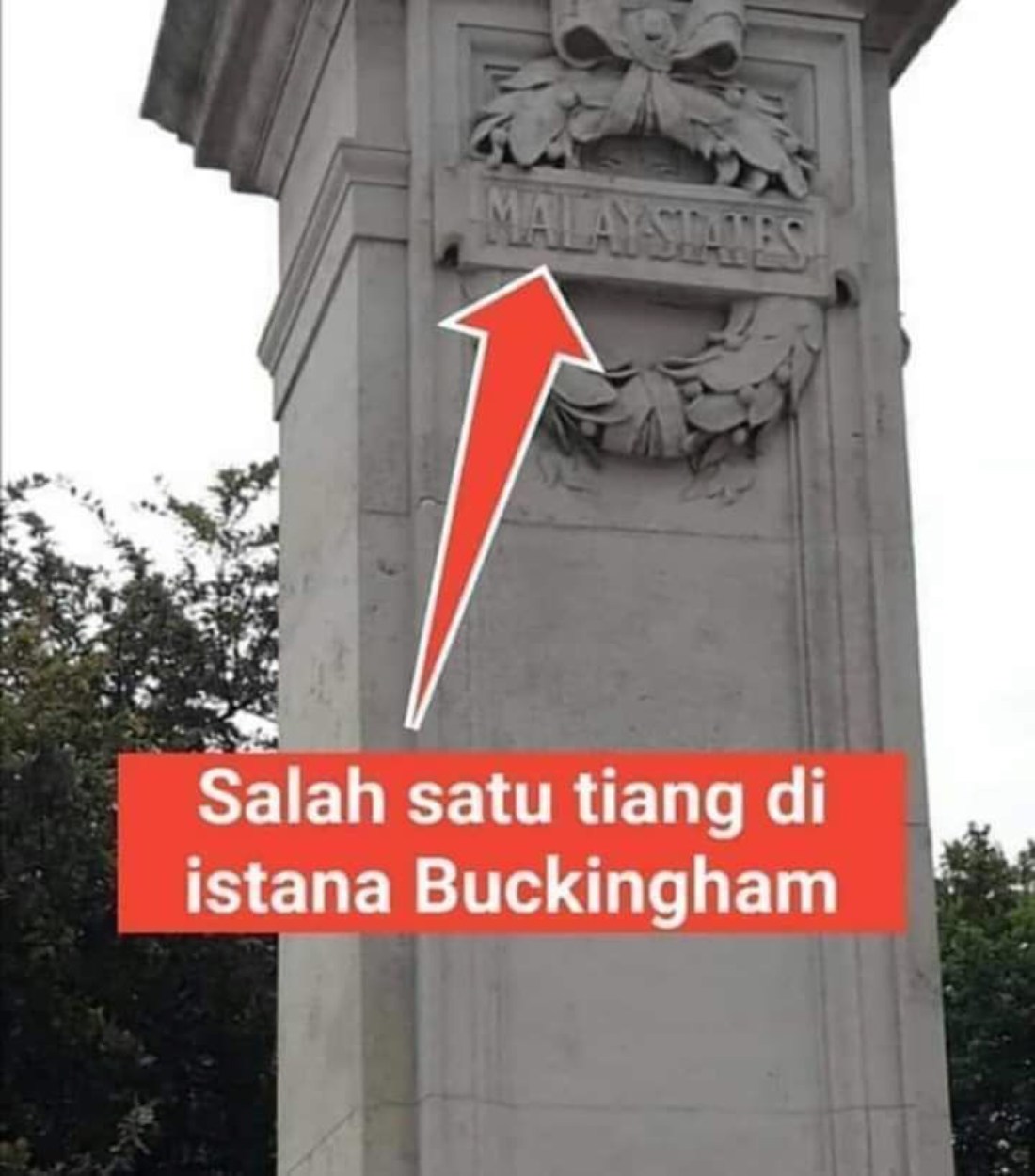 Pada salah satu tiang tersebut terukir perkataan “Malay States” atau Tanah Melayu, tidak pula ditulis Malaya atau Malaysia.