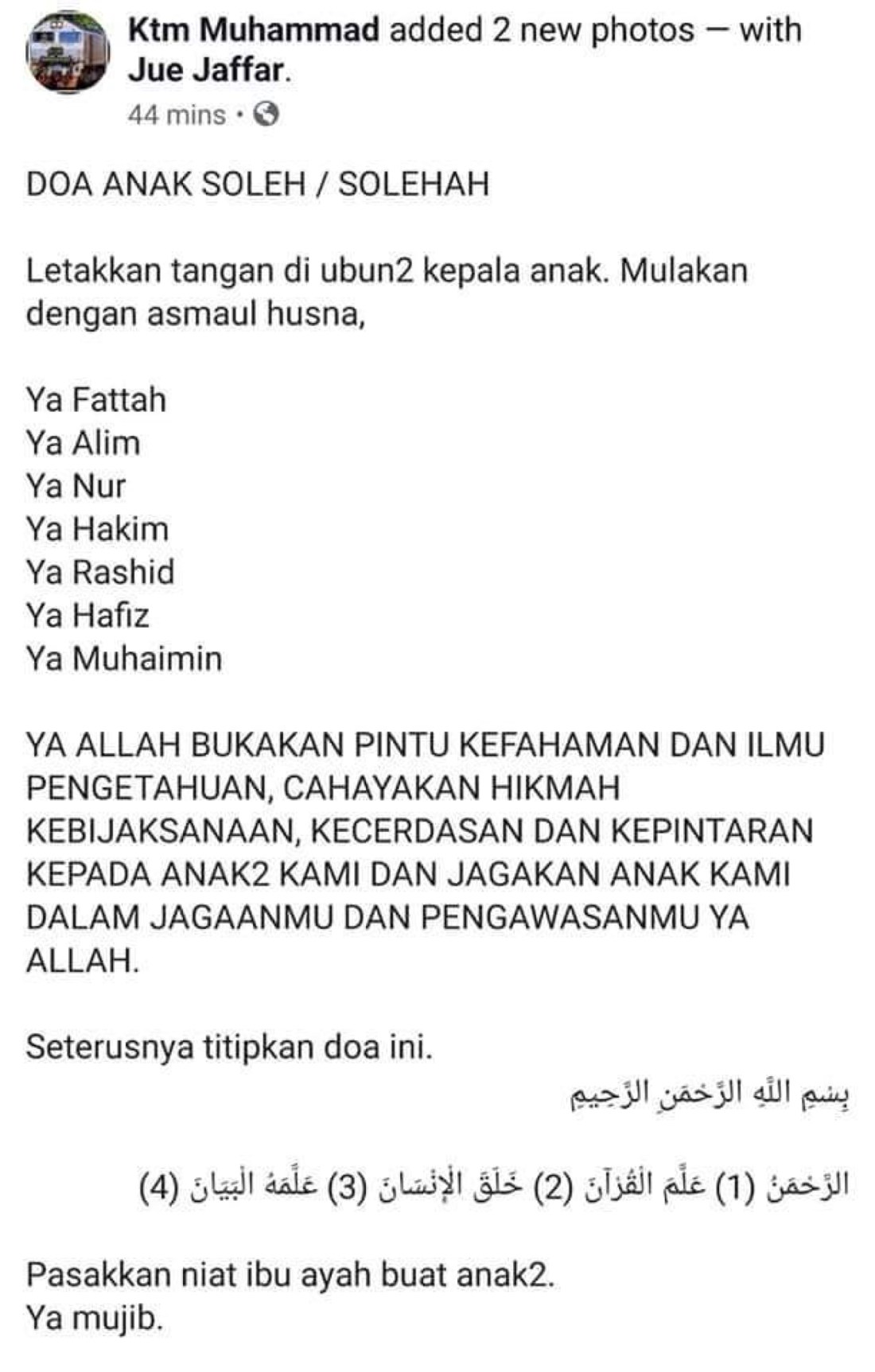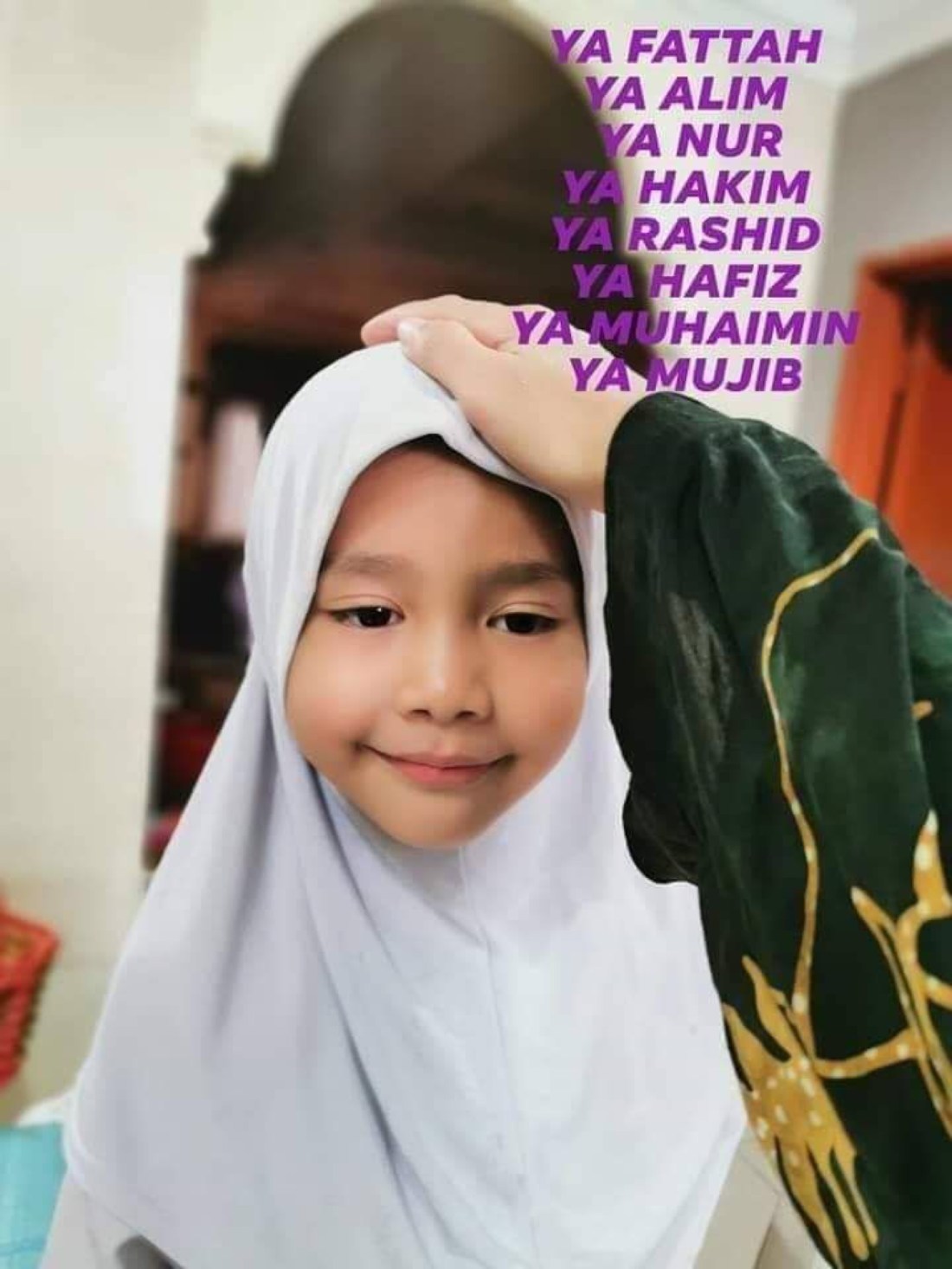 Lalu, saya letakkan tangan di ubun2 kepala Humairaa bersama titipan doa ini dengan genangan air mata. Humairaa turut sama membaca doa ini dengan lancar.