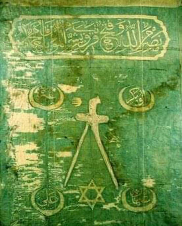 The most interesting part of Hayreddin Barbarossa’s flag is that it bears symbols of Judaism, Christianity and Islam (the 3 “ehl-i kitab” religions sent by Allah, according to Islam).