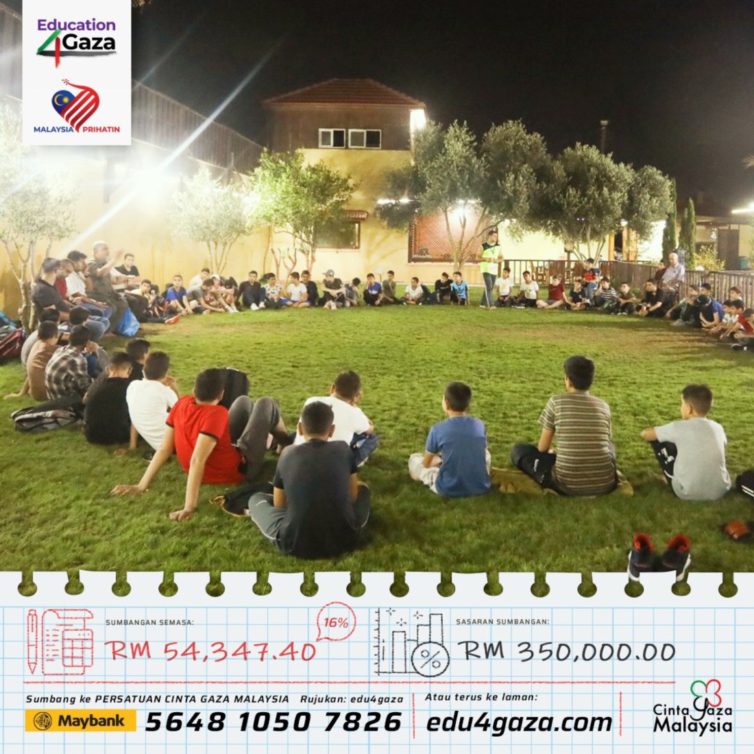 Setakat semalam kita sudah mengumpulkan sumbangan sebanyak RM54,347.40 untuk kempen pendidikan di Gaza.