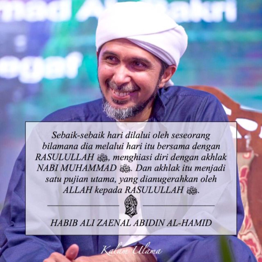 “Sebaik-sebaik hari dilalui oleh seseorang bilamana dia melalui hari itu bersama dengan RASULULLAH ﷺ, menghiasi diri dengan akhlak NABI MUHAMMAD ﷺ. Dan akhlak itu menjadi satu pujian utama, yang dianugerahkan oleh ALLAH kepada RASULULLAH ﷺ.”