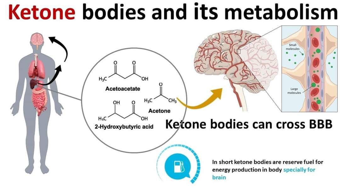 Otak kita amat suka dengan ketone ini sebagai sumber tenaga. Ketone dihasilkan oleh organ hati daripada lemak yang kita makan apabila tubuh kita berhenti makan karbohidrat dan berpuasa. Kajian menunjukkan ketone akan terhasil semasa kita tidur 6 ke 8 jam kerana semasa tidur sebenarnya kita berpuasa secara tidak sengaja. Oleh kerana itu bau mulut semasa seseorang baru bangun tidur juga kurang enak dan masam kerana bau ketone yang dikeluarkan daripada paru-paru kita.