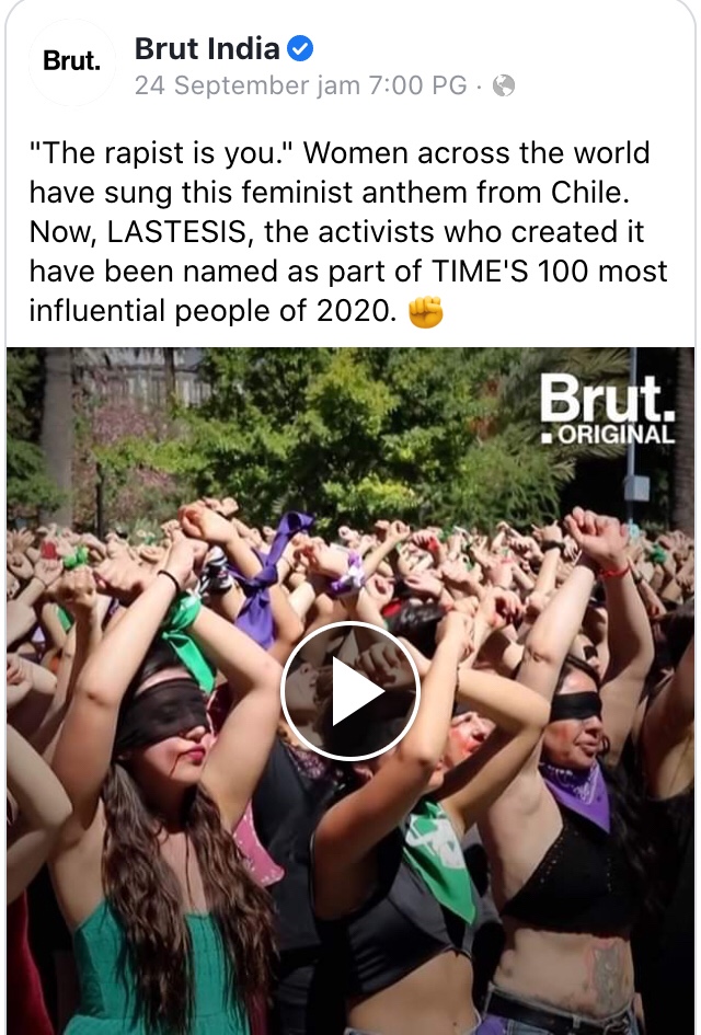 “The rapist is you.” Women across the world have sung this feminist anthem from Chile. Now, LASTESIS, the activists who created it have been named as part of TIME’S 100 most influential people of 2020. ✊