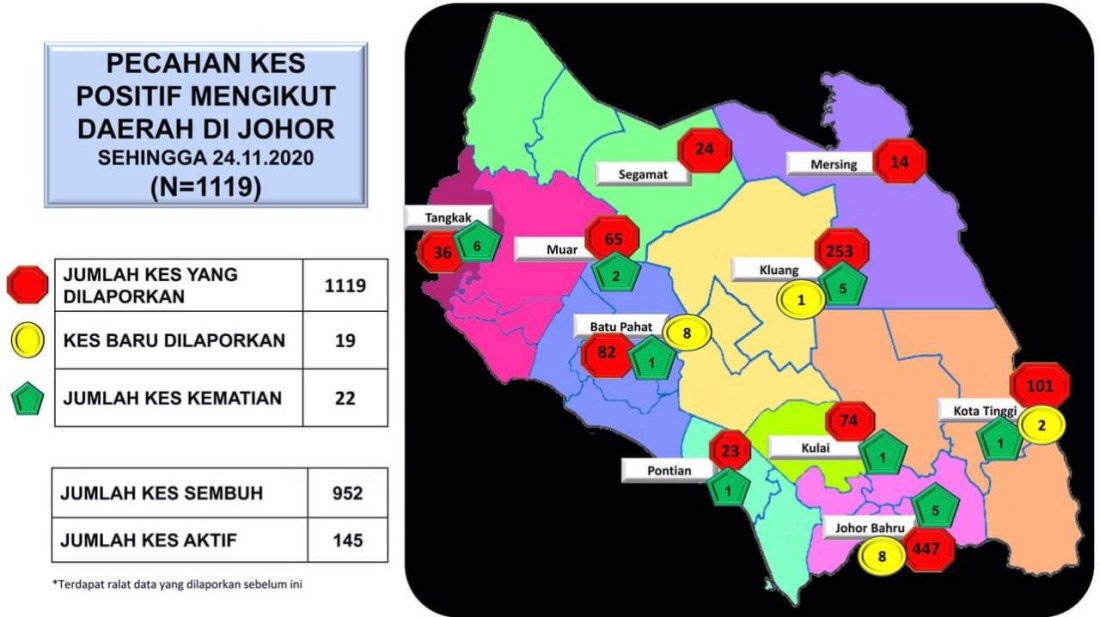 Taburan Data COVID-19 Bagi Seluruh Negeri 🔴🔵Johor Sehingga 24 November 2020 Jam 12.00🕛Tengahari