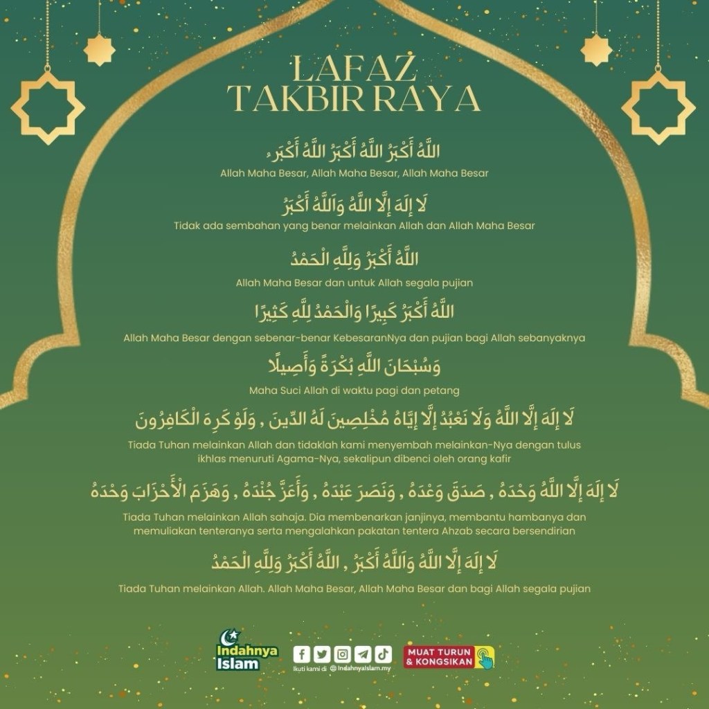 Di Hari Raya, disamping kita bertemu, bersolat dan mendengar khutbah Aidil Fitri, ziarah menziarahi dan maaf bermaafan, kita menghiasi suasananya dengan bertakbir Raya..