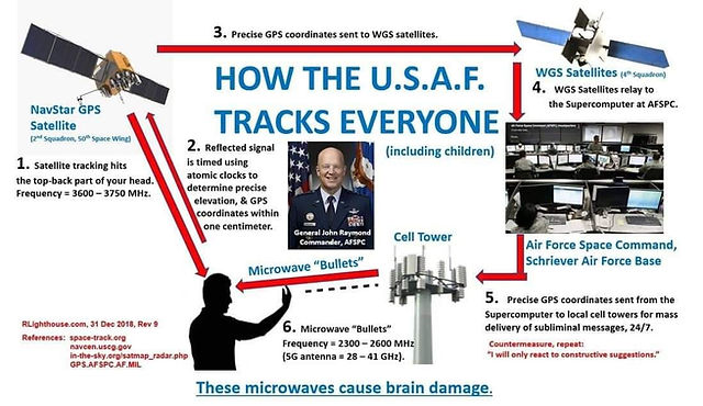 2) Most people in the world, are being precisely tracked by microwave pulses using Lockheed GPS satellites, operated by the U.S. Space Force, Squadron 2, at Schriever Space Force Base in Colorado Springs. This is the largest satellite operations facility in the world.