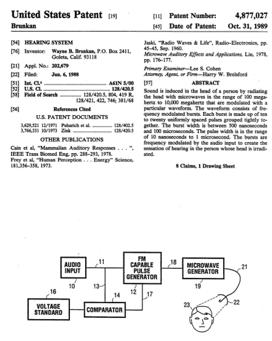 4) Subliminal messages are directed from Cell Towers, at everyone, 24/7. Schriever Space Force Base is the control source. U.S. Patent 4,877,027. Senators, Congressmen, Judges, and even the President, are being hit with specific subliminal messages to affect their decisions.