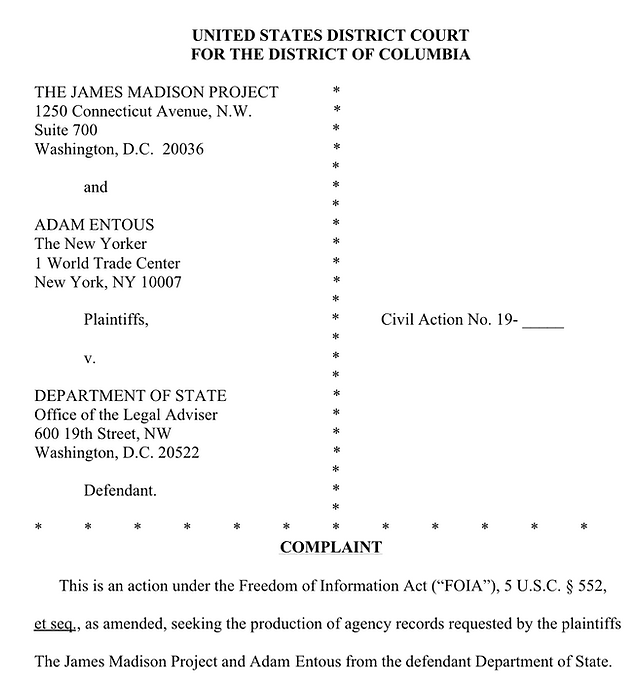 [19] Cuba FOIA Complaint https://www.scribd.com/document/448282721/CUBA-FOIA-COMPLAINT-JamesMadison-Proj-New-Yorker-v-State-Dept-Accountability-Review-Board#from_embed