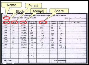 Eighty-five percent of Palestinian inhabitants of the land that is called Israel became refugees, and remained ever since. There is at the UN 453,000 records of individual Palestinian property owners defined by name, location and area, [Fig-2].5 Given the detailed knowledge that exists of almost every parcel of land in Palestine, it is feasible to investigate what the Israelis did with the conquered Palestinian land.