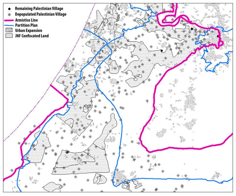 Noga Kadman Source: Noga Kadman. Erased from Space and Consciousness-Depopulated Palestinian villages in the Israeli-Zionist Discourse. Master’s thesis in Peace and Development studies, Dept of Peace and Development Research, Göteborg University, Sweden, November 2001. See also JNF Report: View PDF; and Michael R. Fischbach. Records of Dispossession: Palestinian Refugee Property and the Arab Israeli Conflict. New York: Columbia University Press, 2003, pp. 58-68. ↵