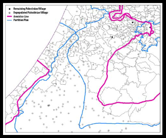 For details, see Benny Morris. The Birth of the Palestinian Refugee Problem Revisited, 1947-1949. CambridgeUniversity Press, Cambridge, 2004; and Ilan Pappe, The Ethnic Cleansing of Palestine. London: One World Publications, 2007. Morris maintains the Zionist view that al Nakbah was “an accident of war”. Pappe maintains that ethnic cleansing was pre-planned. For graphic details of al Nakbah, see Salman Abu-Sitta. The Atlas of Palestine 1948 London: Palestine Land Society, 2005. ↵